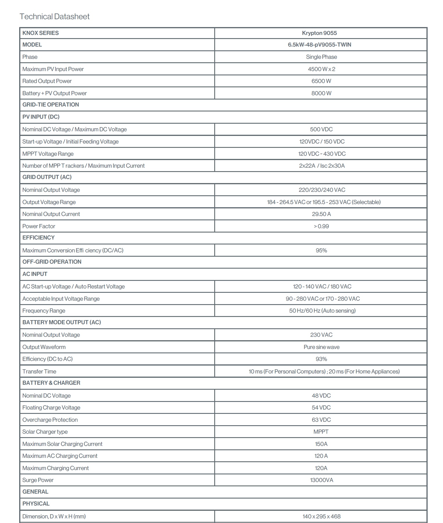 1 review for Knox Krypton 9055 Hybrid Solar Inverter 6.5kW | Dual MPPT | Batteryless | Grid Feeding | WiFi Monitoring | 3 Years Warranty