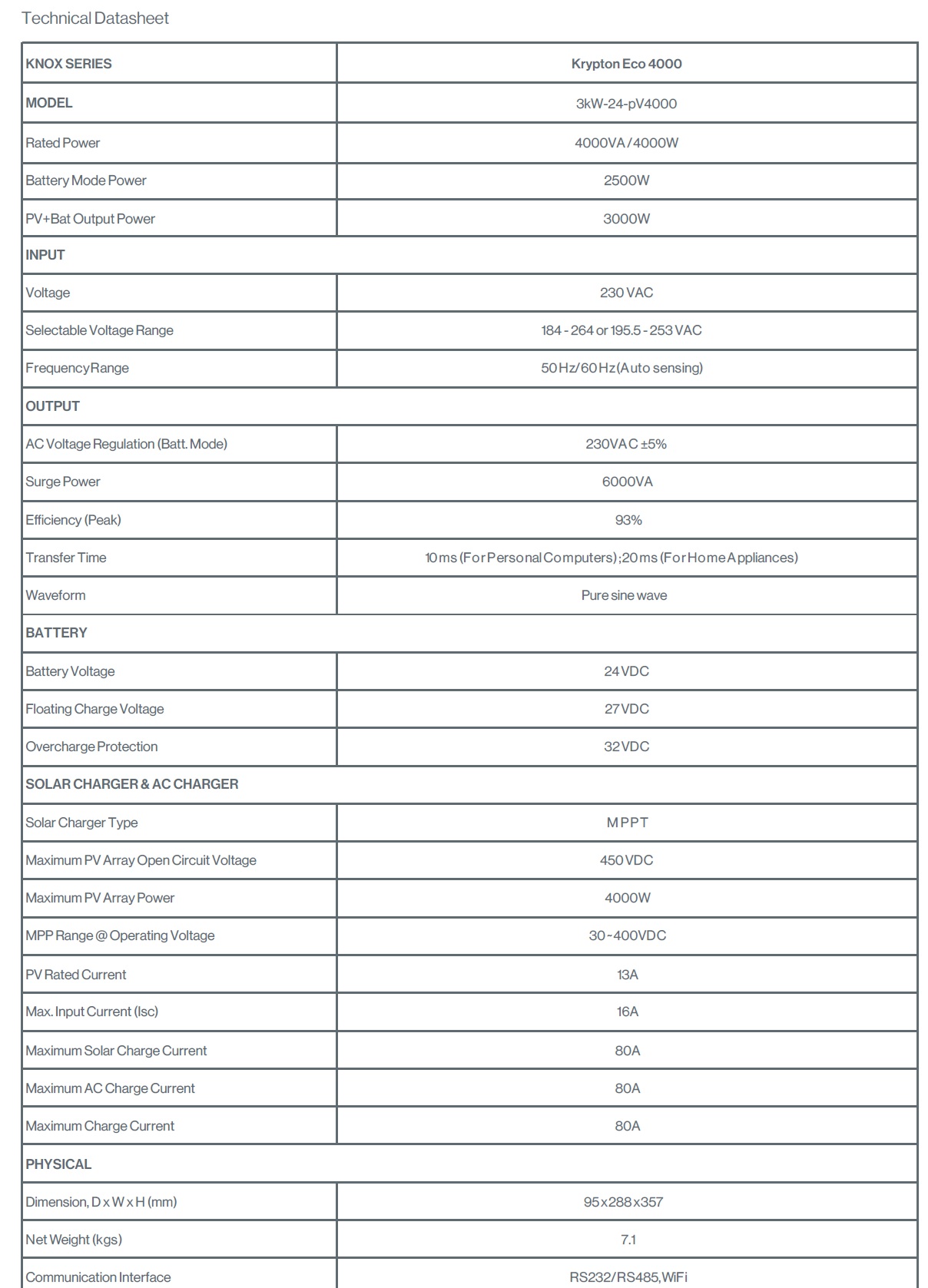 Knox Krypton Eco 4000 Hybrid Solar Inverter