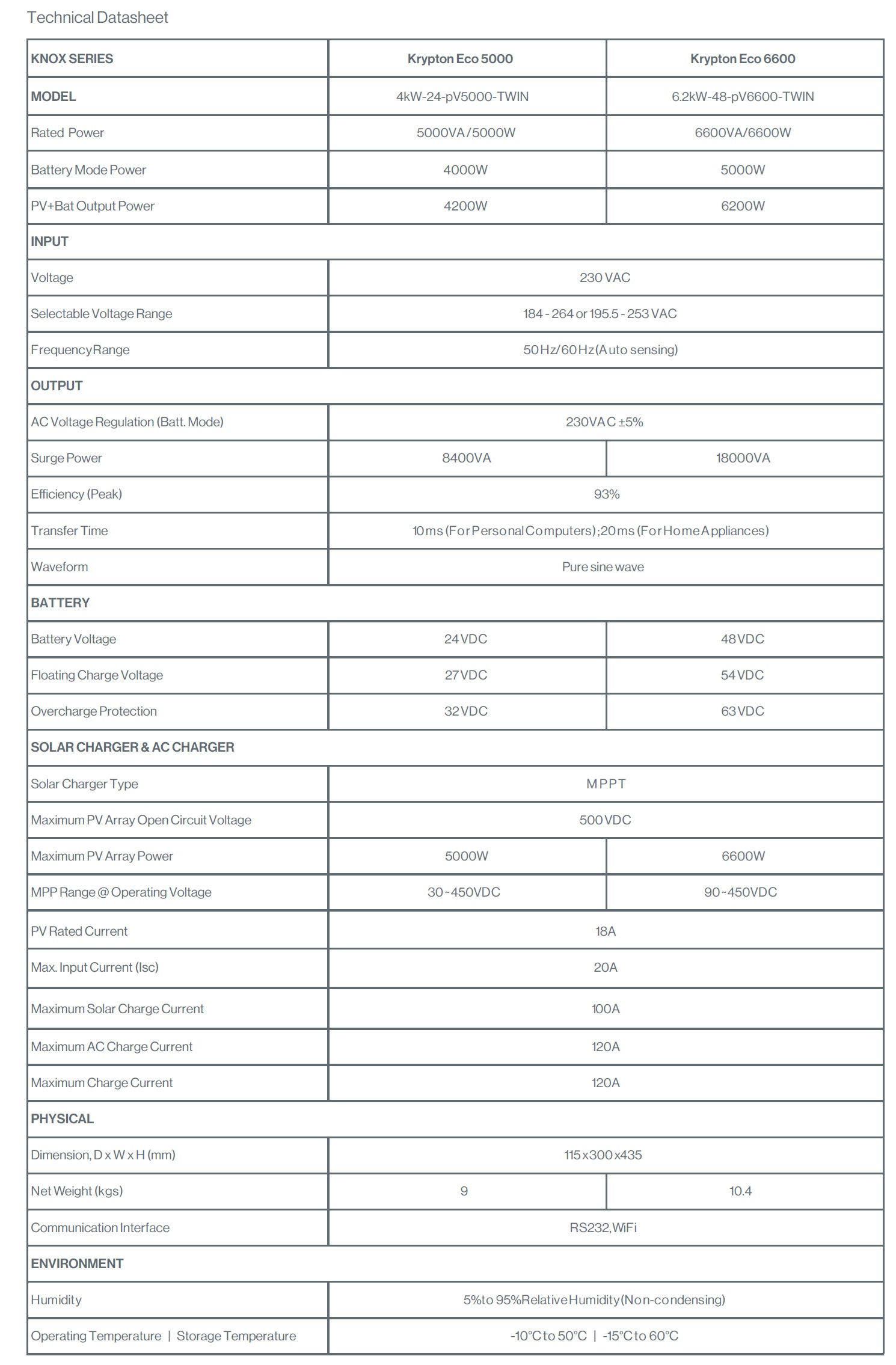 | Knox Krypton Eco 6600 | 6.2kW-48-pV6600-TWIN | 48V |