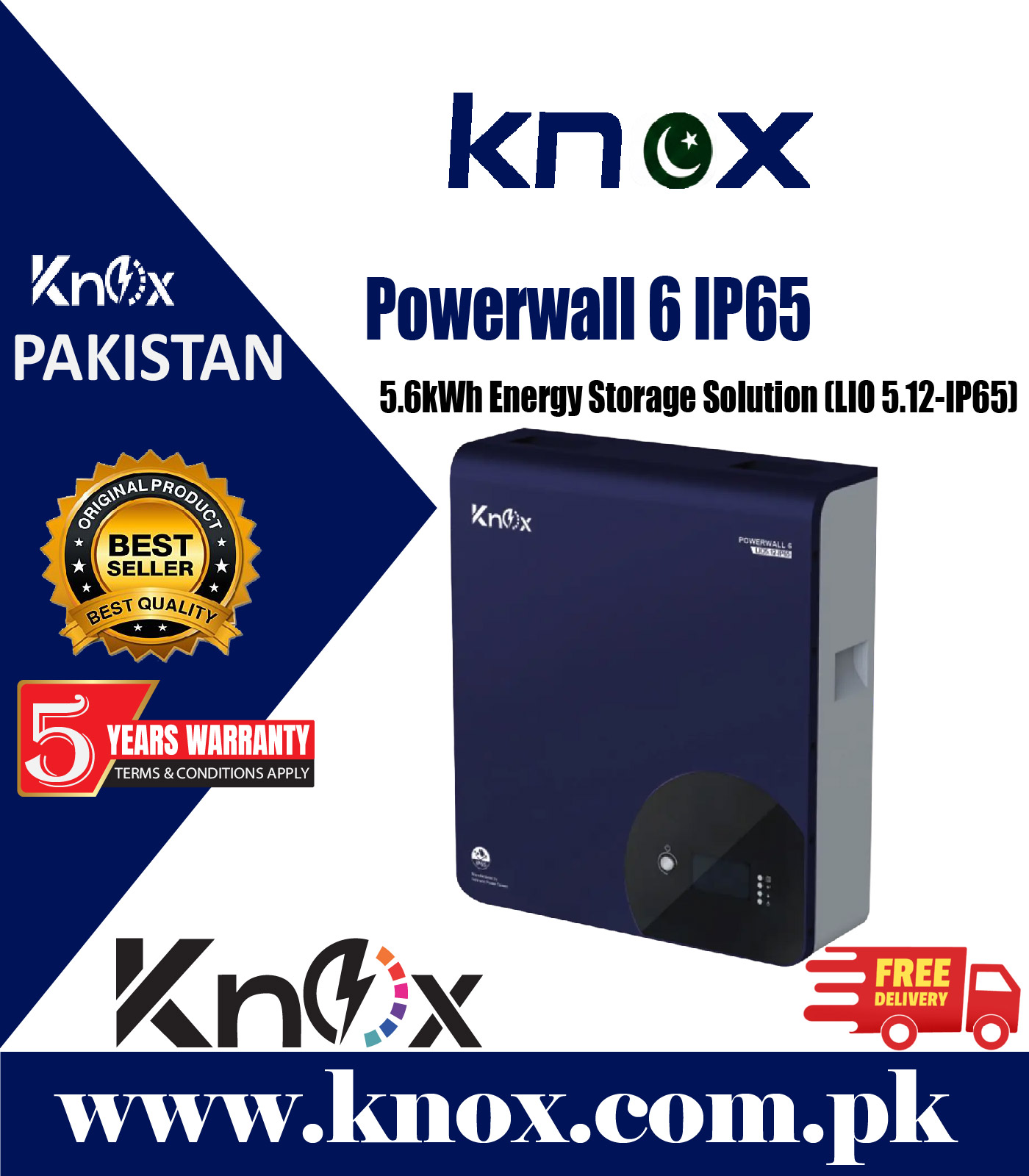 Knox Power Wall 6 IP65 LIO 5.12-IP65 51.2V 100Ah Lithium-Ion Battery is a high-performance 5.6kWh energy storage solution designed for residential and commercial solar systems. Built with advanced LiFePO4 (Lithium Iron Phosphate) technology, it ensures superior safety, long lifespan, and stable performance even under demanding conditions.
