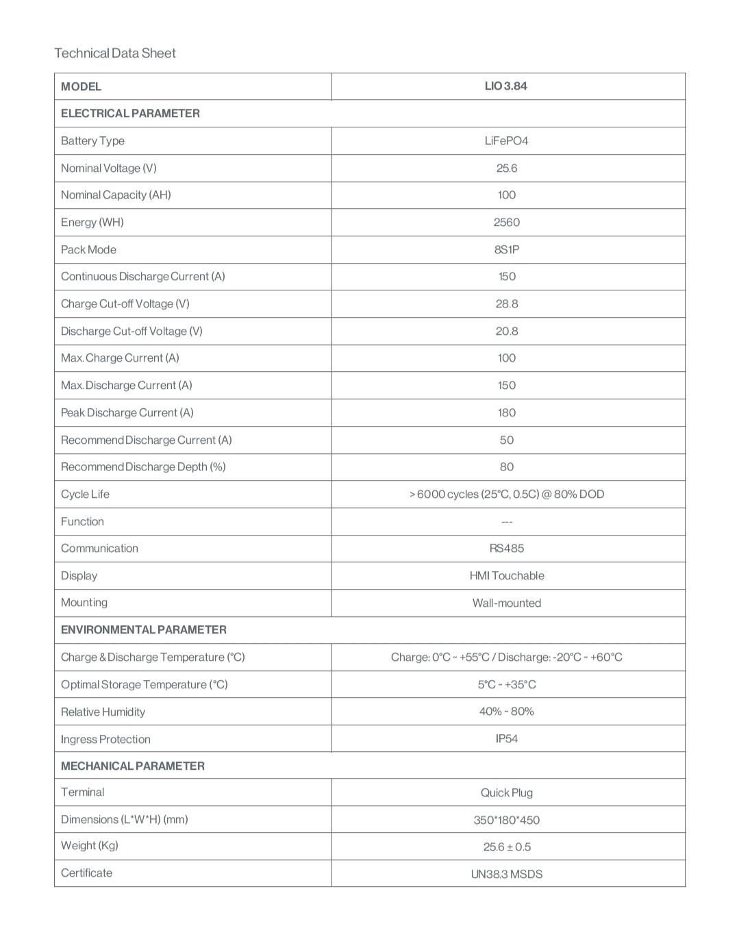 | Capacity | 100Ah |