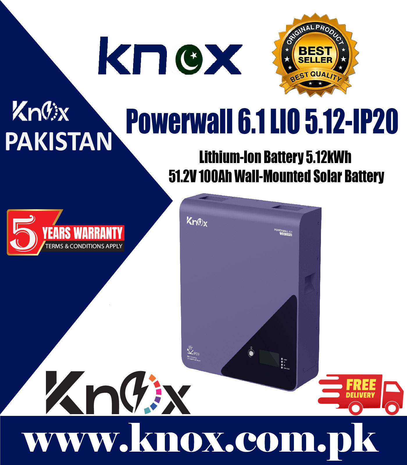 Knox Powerwall 6.1 LIO 5.12 IP20 Lithium Battery is a high-performance wall-mounted LiFePO4 energy storage system designed for solar, backup, and off-grid power solutions. With a 51.2V 100Ah capacity delivering 5.12kWh energy, it provides reliable and stable power for homes and businesses.