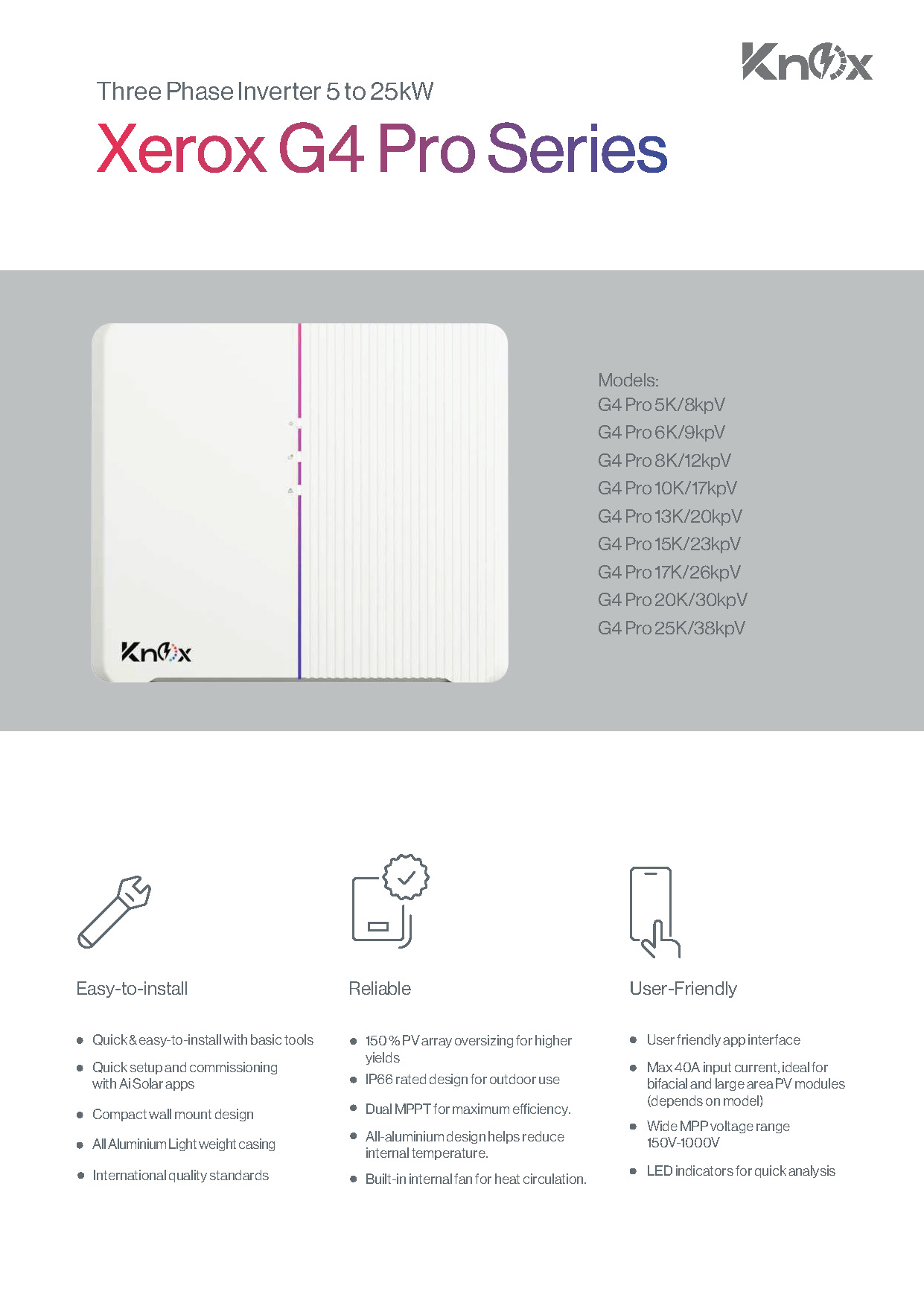 Knox Xerox G4 Pro Series Three-Phase Solar Inverter (5kW–25kW)