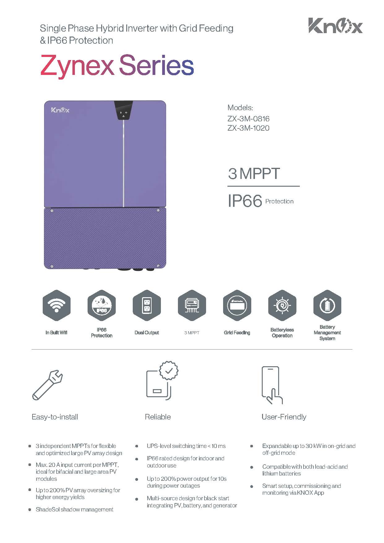 Knox Zynex Series Hybrid Solar Inverter IP66 | 3 MPPT Smart UPS-Grade Inverter for On-Grid & Off-Grid Solar Systems