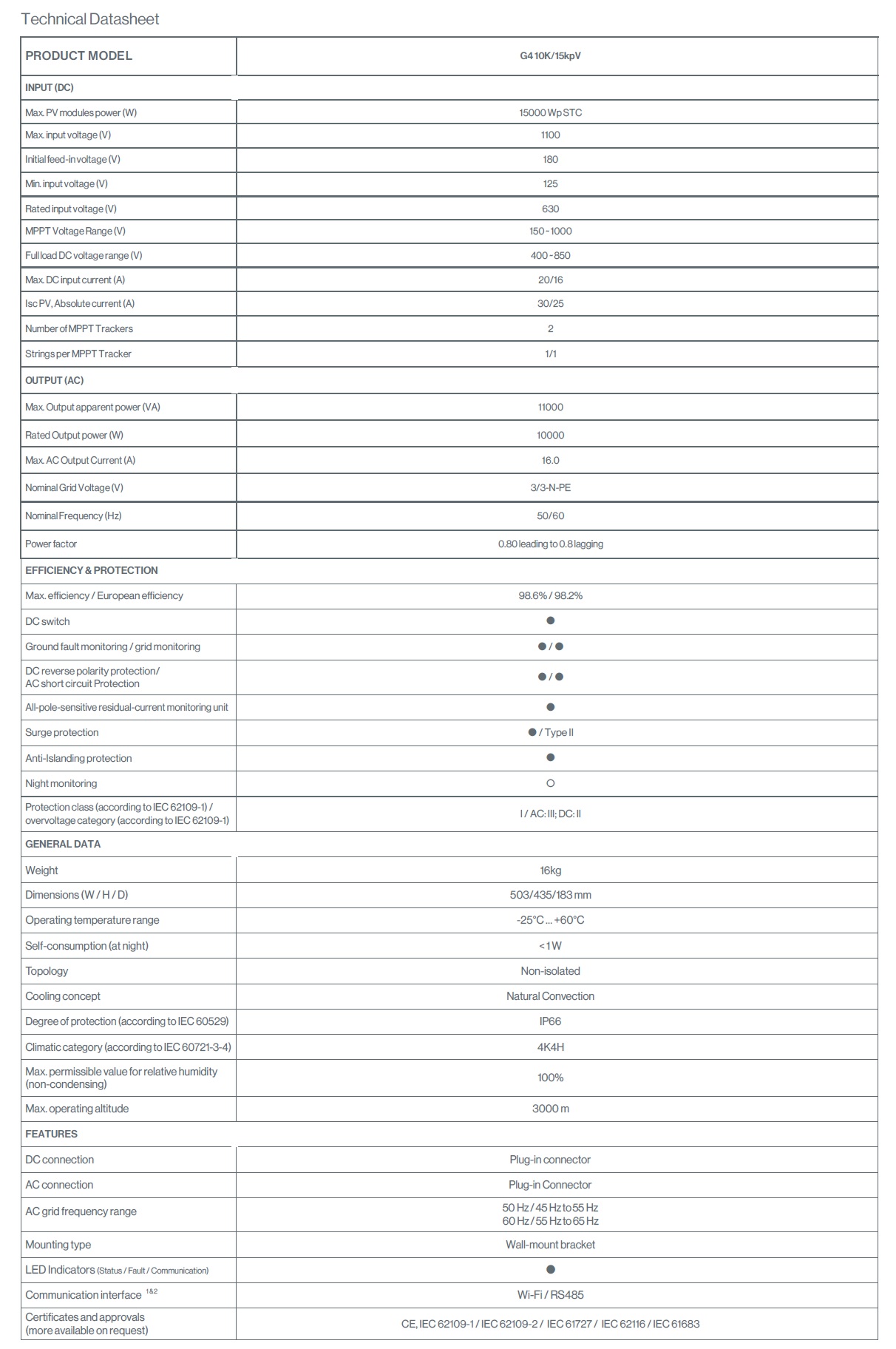 | Max. PV Power | 15000 Wp (STC) |